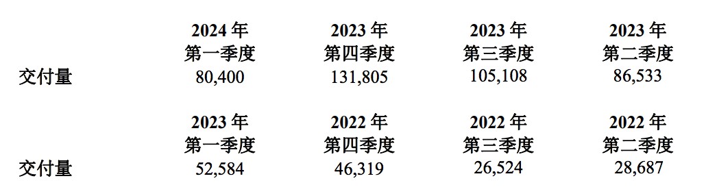 今年一季度,理想汽车交付量 80400 辆,同比增长 52.9%,环比下降 39%。展望第二季度,理想汽车预计交付量为 10.5 万-11 万辆,同比增长 21.3%-27.1%。