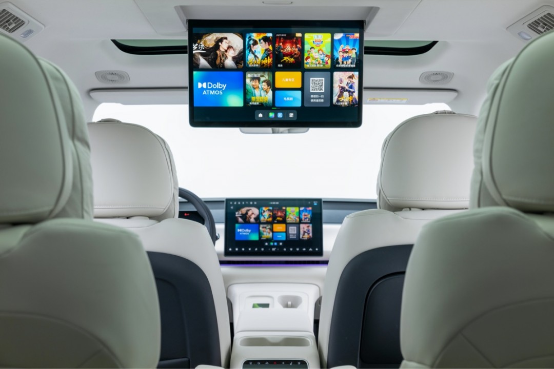 内饰方面,零跑 C16 延续了家族化设计风格,采用了 10.25 英寸高清仪表+14.6 英寸中控屏的组合,同时在后排车顶还配备了一块 15.6 英寸娱乐屏幕,全车搭载了 21 个高品质扬声器,采用 7.1.4 布局,实现了杜比全景声。