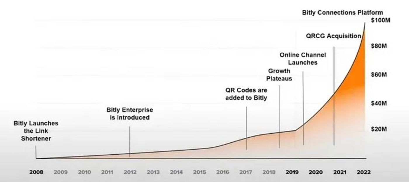 如今,这家古早又低调的公司,完全打破了 「SaaS 在美国做不了 To C」 的魔咒,突破了 1 亿美元的 ARR;即使是 2022 年 ChatGPT 横空出世、很多人开始用 ChatGPT 等AI工具进行长链缩短链,也并没有动摇 Bitly 的增长基本盘。