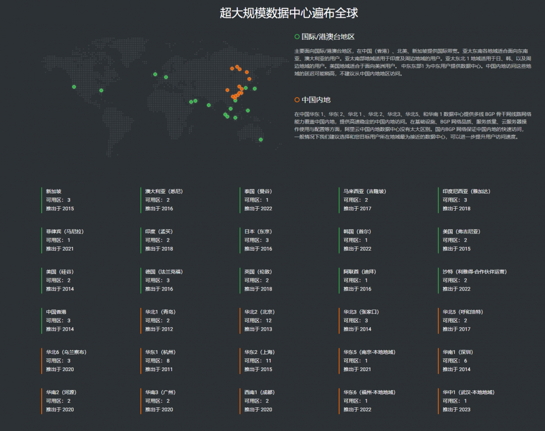 查询官方资料获悉,阿里云在全球 30 个地理区域内运营着 89 个可用区,其中包括亚太各地域 (如香港、澳大利亚、印度、日韩等)、美国及中东等区域。同时,阿里云 CDN 覆盖全球六大洲、70 多个国家、3200 + 全球节点。(问舟)