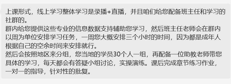 我们联系到了一家专门培训高考志愿规划师的机构,其负责老师表示,培训课程共有 80 多个学时,普通人只需每周进行 3 小时的线上学习,6 个月左右即可学完并考取相关证书。