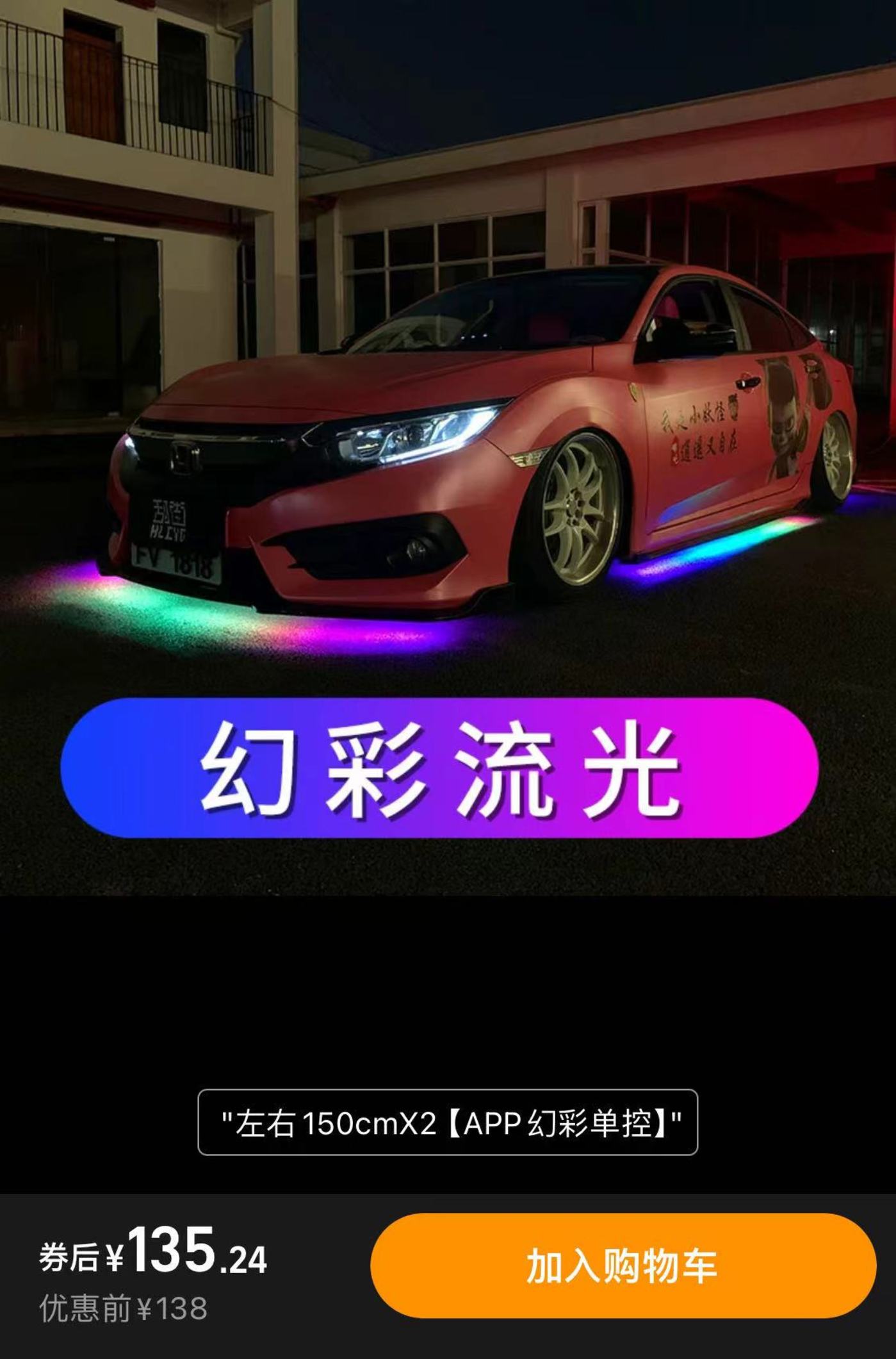 就拿车外氛围灯来说,小米 SU7 的智能底盘氛围灯需要 999 元,支持多种控制方式和点亮方式,而小通在某宝上发现,两条 150cm 长且支持幻彩流光效果的氛围灯带,呈现的视觉效果确实不及官方配件的一半,但不到 140 元的价格,对比小米 SU7 的智能底盘氛围灯确实是一个大优势。