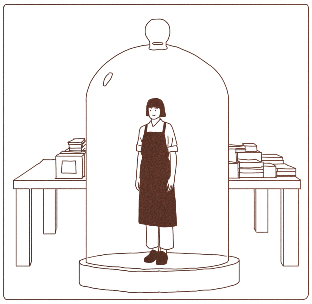 转正考核的时候,店长评价严歌 「身上好像有一个玻璃罩子」。严歌所在的书店除了她还有三位店员,都是女性,都已经结婚生子。她们做过服装店、做过夜场。闲暇的时候,她们在一起聊自己的人生,和老公吵架、孩子上学,严歌插不上话。她从未向她们讲自己的烦恼。