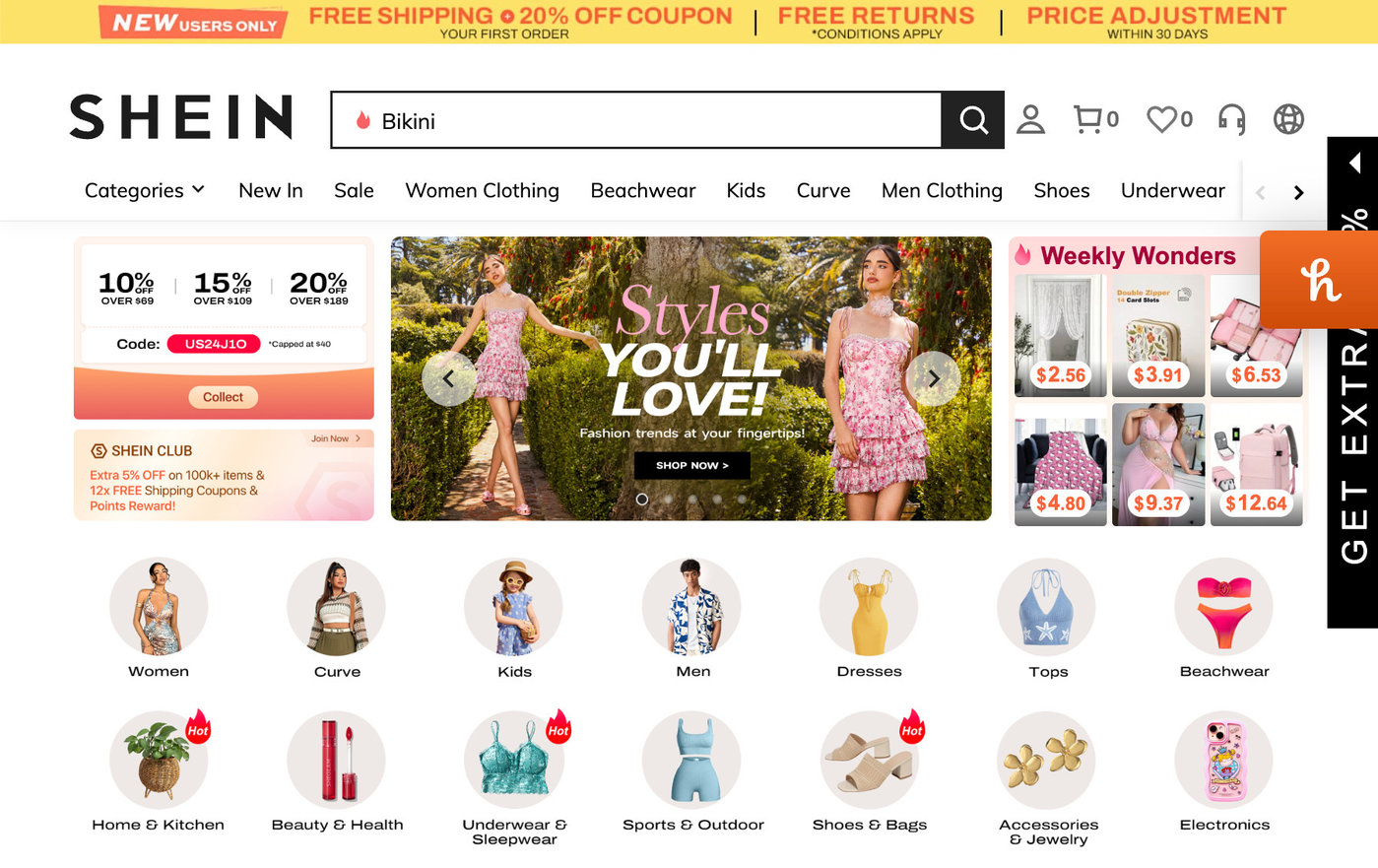 SHEIN 网站截图