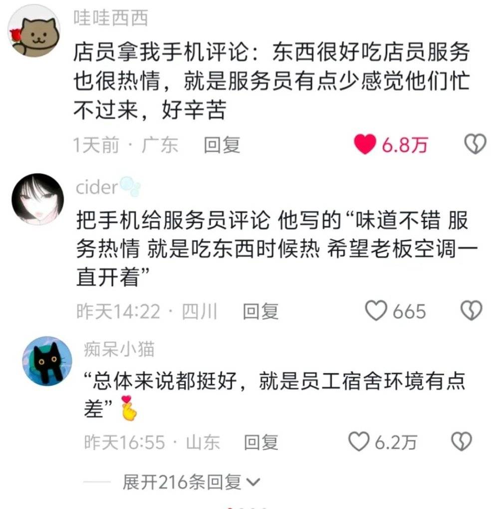 这是如今点评软件上商家评价普遍行情。看的不是硬实力,看的是谁家店员更能豁得出去。