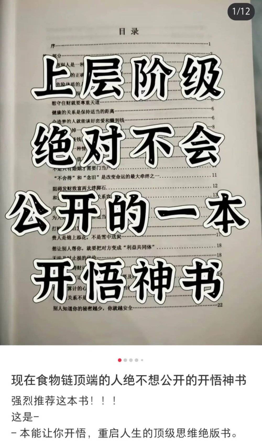 「一本上层阶级绝对不会分享的开悟神书」,售价 29 块 9,最吸引人的一章是 「阻碍发财致富的两大绊脚石」。
