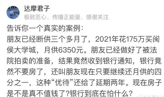 网传有银行已经主动向购房者提供房贷延期,每月只需还房贷的四分之一。
