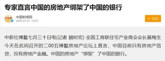 2005 年博鳌房地产论坛上,全国工商联住宅产业商会会长聂梅生曾大胆开麦:中国的房地产 「绑架」 了中国的银行。