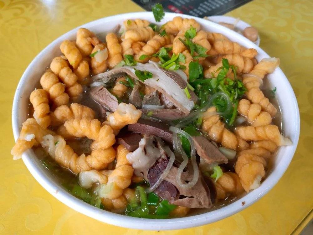 乾县锅盔名声远播,在关中西部的乾县、礼泉、扶风等地,锅盔被当地人用来制作泡馍。无论是礼泉的水盆羊肉,还是乾县和扶风的羊肉泡,切成片的锅盔再被食客掰成块状,就能放入滚烫的羊肉汤里。外酥里硬的麻花,以及羊肝、羊血等下水,还为这一带的水盆羊肉增添了更多风味。