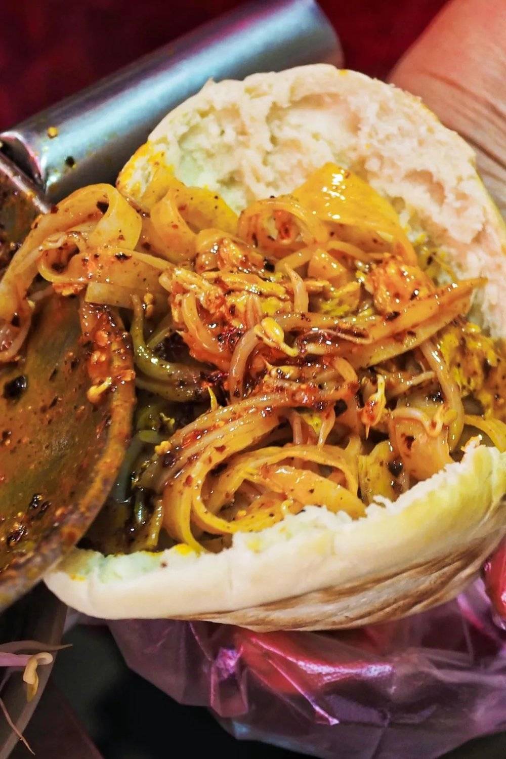 荷叶饼加肉臊子,是宝鸡的另类肉夹馍。摄影/陈仓识火