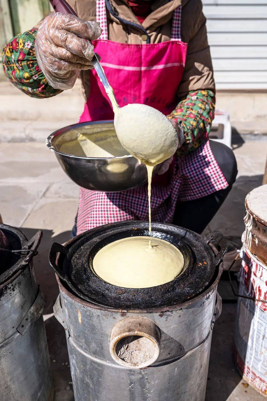 榆林高家堡,人们正在制作摊馍馍。摄影/张永锋
