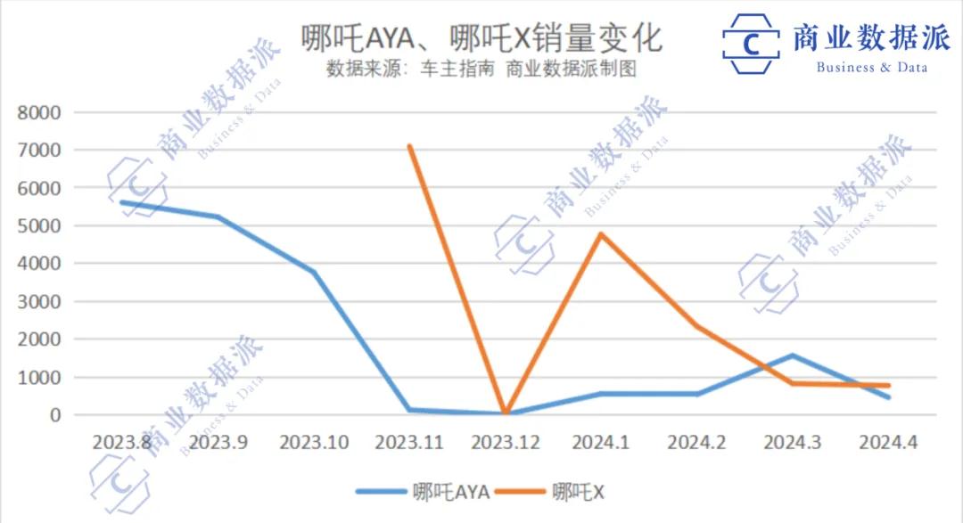 在 10 万~15 万这个消费者极度敏感的价格段里,哪吒一边涨价,一边几乎 「换汤不换药」 升级的态度,使得哪吒后来虽进行了价格调整,但消费者还是用真金白银做出了选择。销量数据显示,哪吒 X 和哪吒 AYA 在交付前几个月维持了几千的销量,随后便 「一头栽倒」。