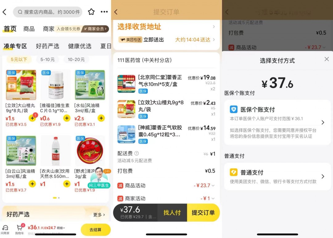 美团使用医保买药步骤