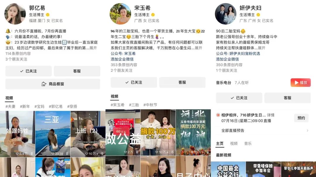 更重要的是,放眼望去,这些主播达人有很多共同点,基本都是 「90 后二胎宝妈」「85 后创业夫妻」 等接地气人设,平时短视频讲的是婆婆妈妈、家庭伦理的内容。