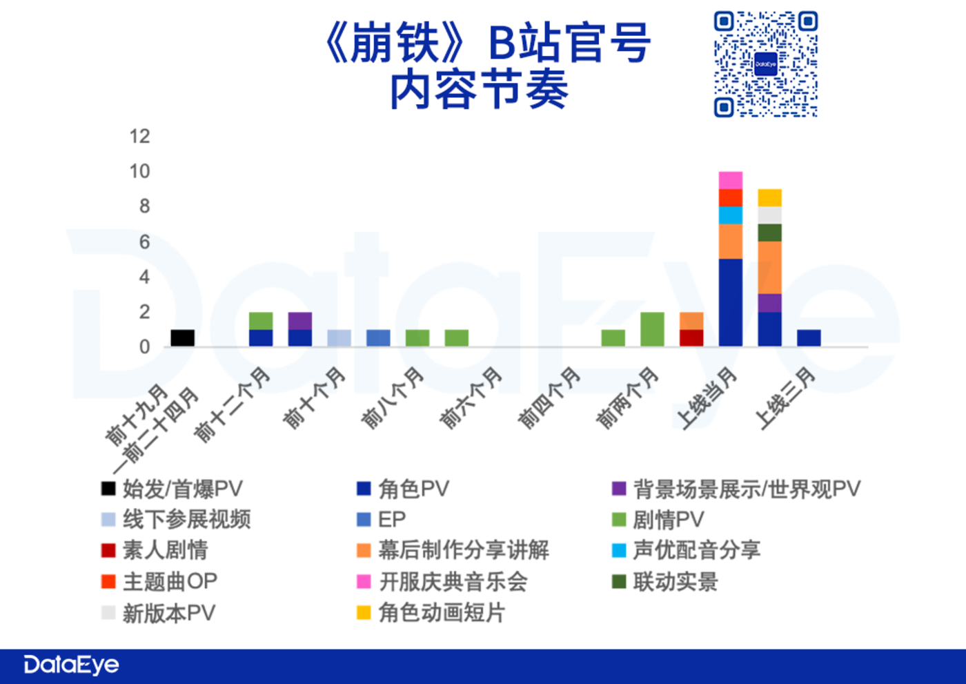 《崩铁》 也大概是这个思路。前期:介绍剧情、背景、世界观、核心角色,每个月 2-3 支短片 PV。公测前数月:由于需要囤上线内容,且恰逢过年,暂停发布。公测前:多元内容同时发布,其中角色 PV、幕后制作分享两类最多。相对 《崩铁》 来说,《绝区零》 内容多样性有所欠缺。