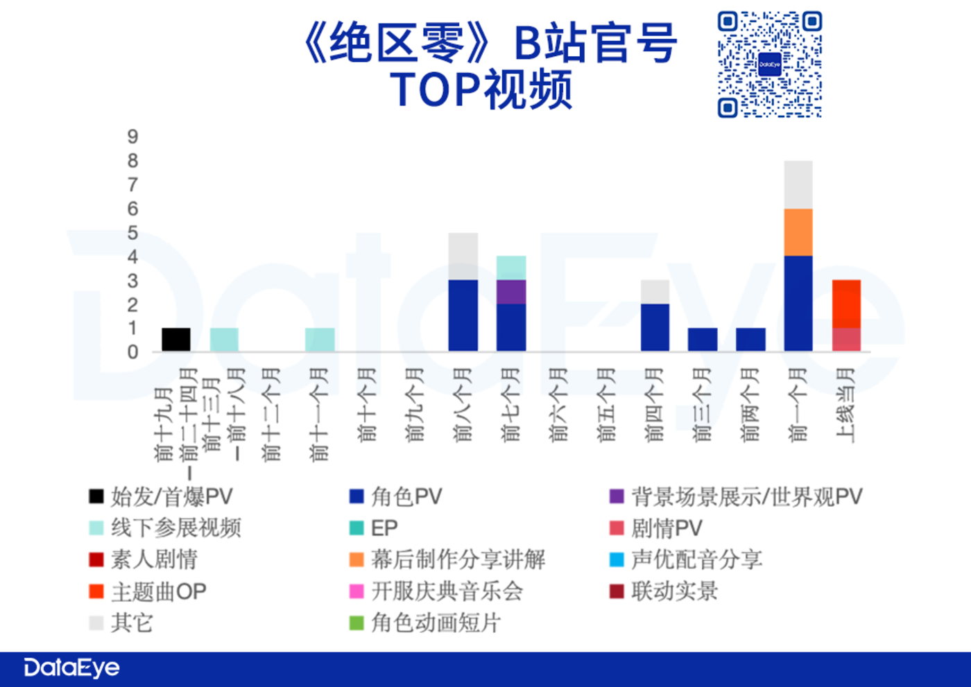 《绝区零》B 站上官方视频内容,以角色 PV 为主,其次是剧情 PV、音乐类、线下参展视频。官号更新佛系,中途过年停更,公测前后多元内容齐爆发,其中角色 PV、幕后分享居多。