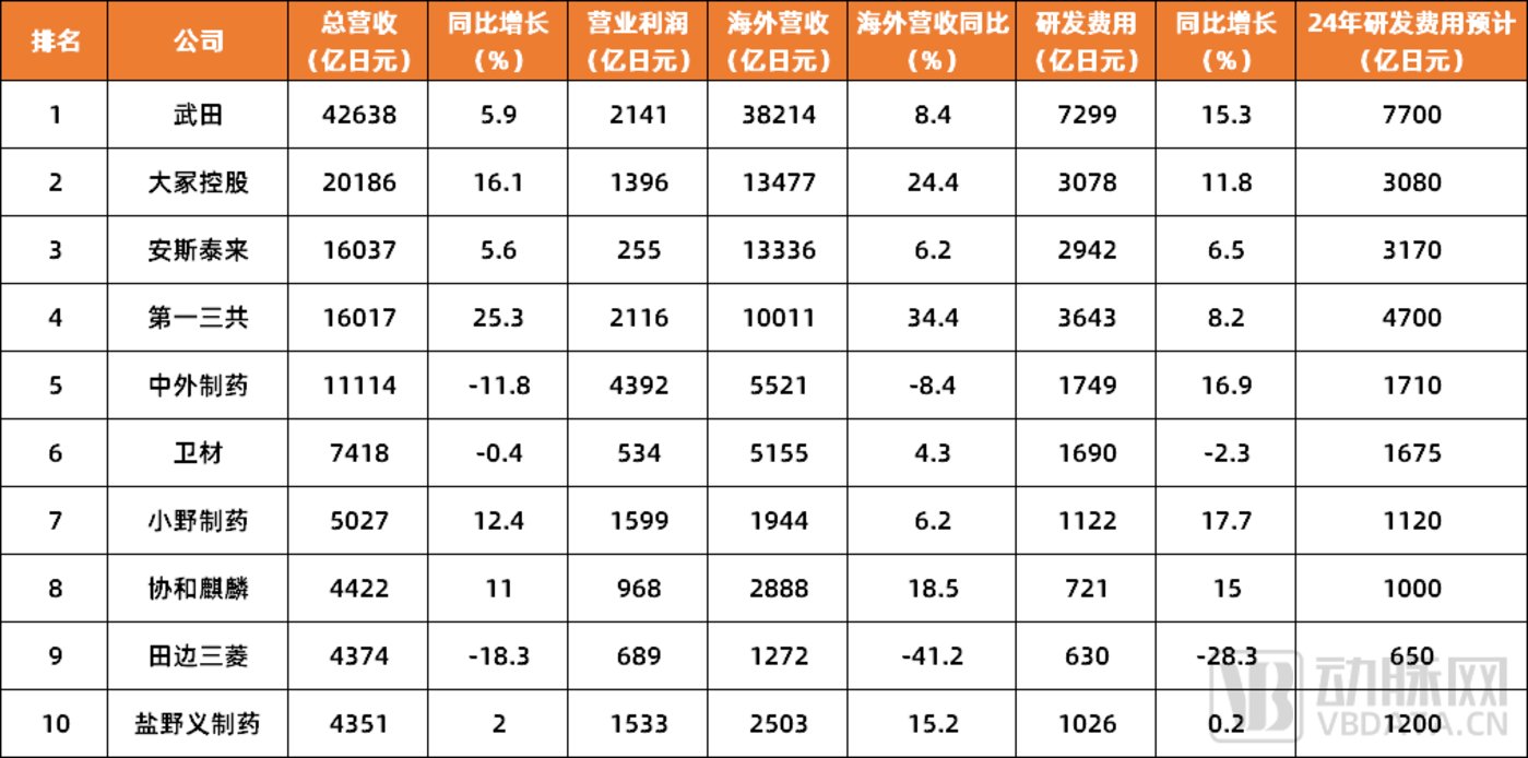 图 2.2023 年 4 月-2024 年 3 月日本十大药企经营情况 (数据来源:AnswersNews )