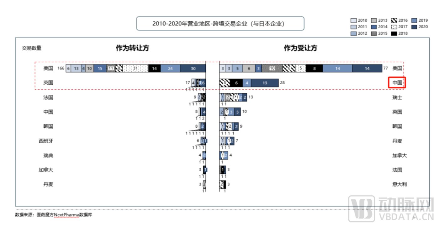 图 4.2010-2020 年营业地区-跨境交易企业 【日本】(图片来源:医药魔方)