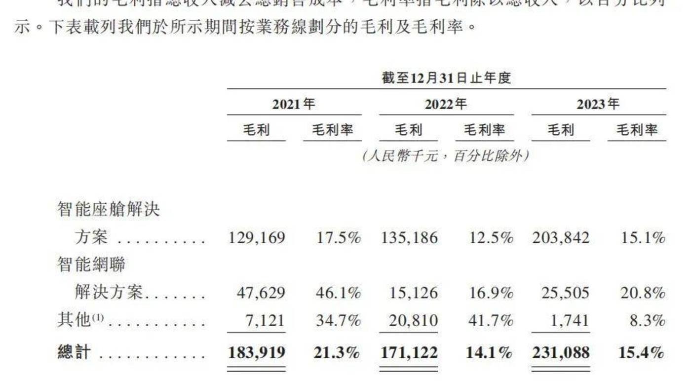 对此,博泰车联网表示,智能座舱解决方案毛利率下降的原因是材料成本上升所致。而智能网联解决方案毛利率下滑,主要是因为一名主要客户合约在 2021 年到期。