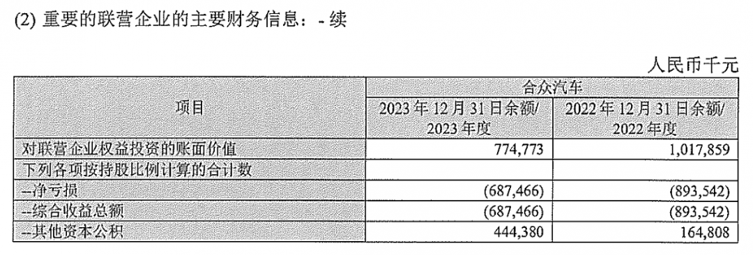 根据财报披露的 360 重要联营企业哪吒汽车母公司 (合众汽车) 的主要财务信息 (如上图) 显示,360 对哪吒汽车母公司在权益法下确认的投资亏损 2022 年达到 8.93 亿元,2023 年则为 6.87 亿元。