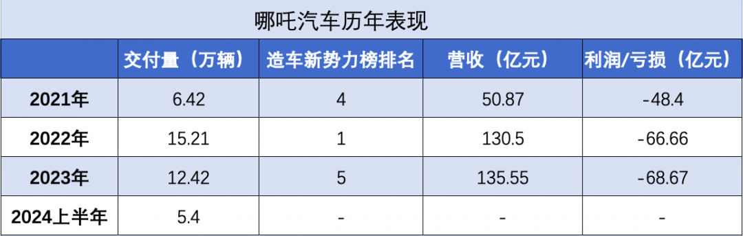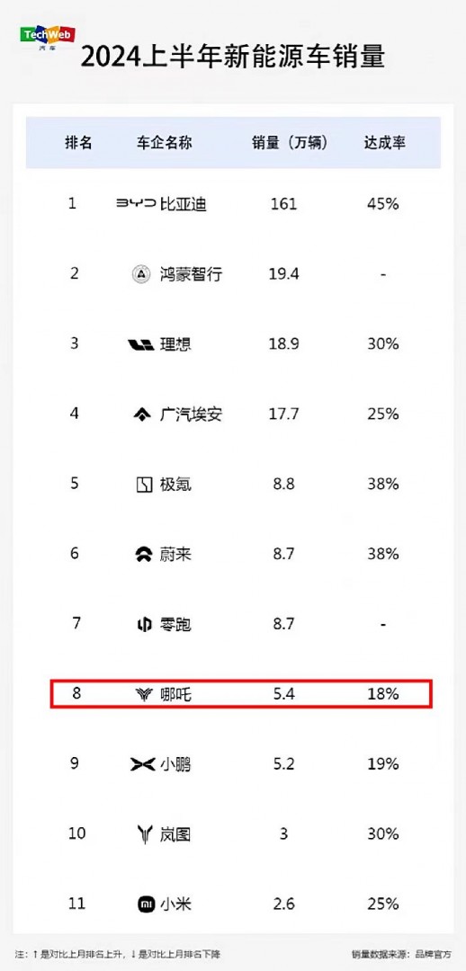 今年上半年,哪吒汽车的累计销量仅为 5.4 万辆,不及 2023 年 (销量 12.42 万辆) 的一半,2024 年年销 30 万辆的目标也仅达成 18%。下半年哪吒汽车的销售任务挺重。