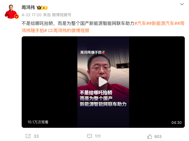 从 3 年前斥资 19 亿元投资哪吒汽车成为 「产品经理」,到今年积极指导哪吒汽车团队向小米和雷军学习营销,周鸿祎对哪吒汽车可谓投入巨大、寄予厚望。