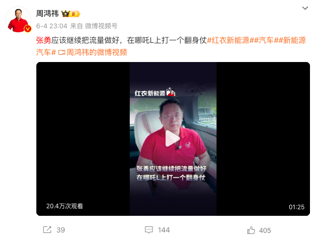 也难怪 6 月初,张勇在微博发文称:自哪吒 L 上市 (5 月 26 日开启预售) 以来,当前订单供不应求,工厂加班加点保供应。 最近在老周 (周鸿祎) 的帮助和支持下,哪吒获得了前所未有的关注,也提振了产品的订单增长,我们内部复盘一致认为 L 这款车的成功,一半功劳是老周的。