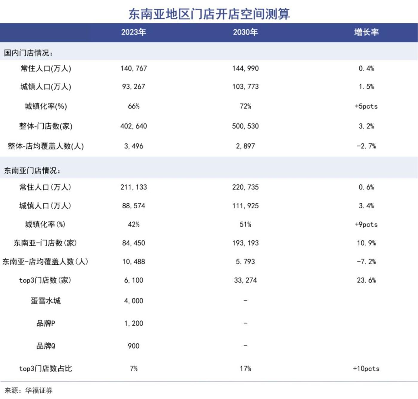 到年底,蜜雪冰城海外门店已经超过 4000 家,霸王茶姬海外门店超 100 家。这两家都是在 2018 年左右就开始布局海外市场,