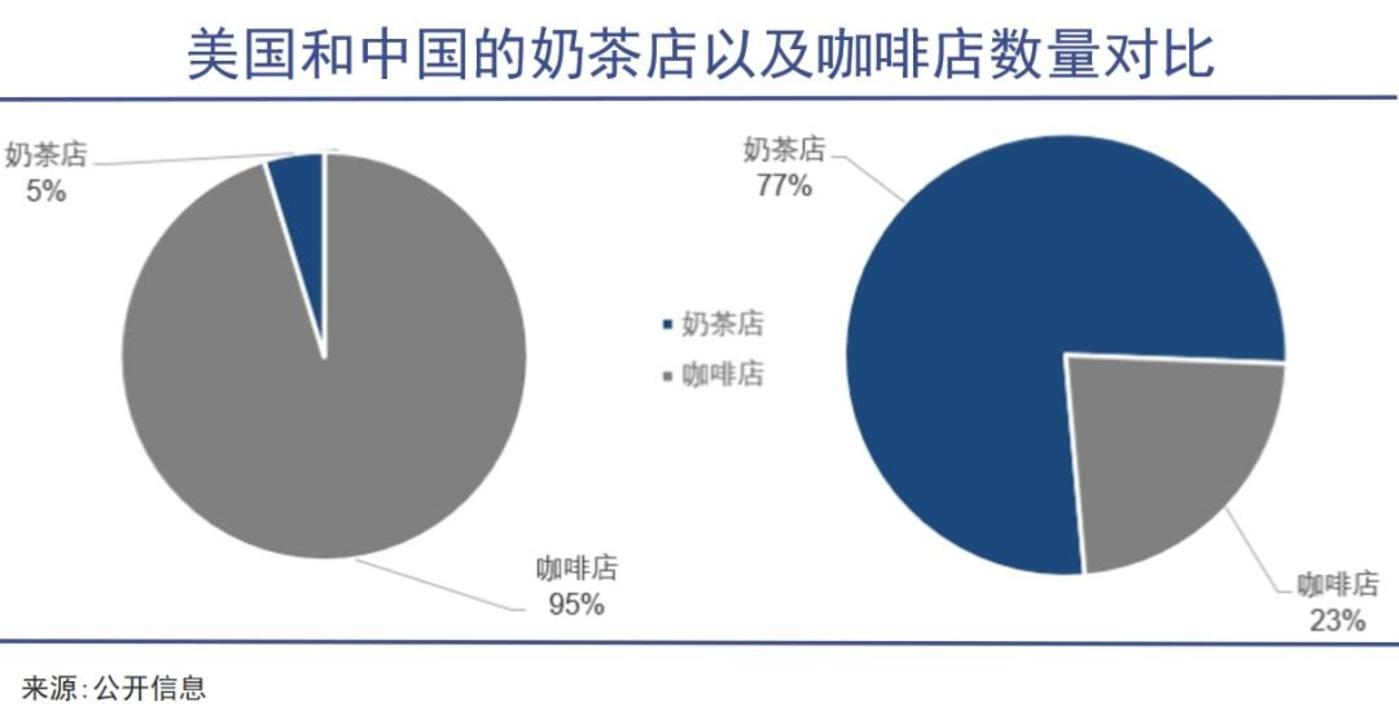 在中国市场,奶茶的销售量和消费频率早已大幅超过咖啡,现制茶饮中奶茶店占比达到 77%。但在美国,喝奶茶仍旧是一个新兴风潮,美国奶茶店数量占比尚不足 5%,且根据 2022 年美国饮品消费调查显示,美国消费者对汽水 (18.7%)、咖啡 (10.8%)、啤酒 (9.9%)、饮用水 (9.5%) 的偏好均高于牛奶 (7.8%) 和茶水 (5.4%)。