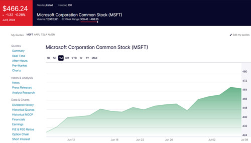 而在周一美股收盘时,微软报 466.24 美元,较前一交易日收盘时的 467.56 美元下跌 1.32 美元,跌幅为-0.28%,市值缩水至 34652.38 亿美元,较苹果市值低 281.72 亿美元,较前一交易日蒸发 98 亿美元。