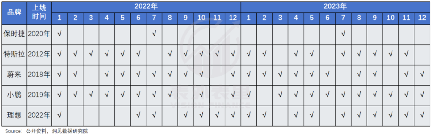 过去 2 年,保时捷更新 OTA 功能的次数屈指可数,而特斯拉和国产新能每隔 1-3 个月就会更新一次。