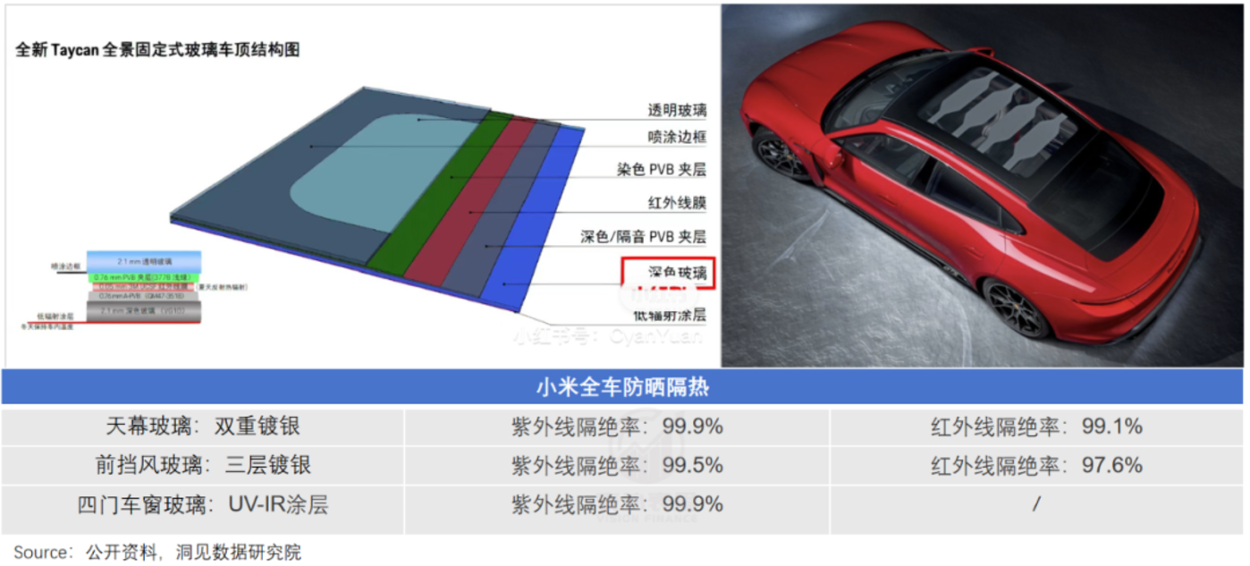 现在她们的痛点,被小米当看成 「核心点」 去突破,并且是全景天窗、前后车门 「全家桶」 赠送,最晒的前挡风玻璃卷到了 3 层镀银。