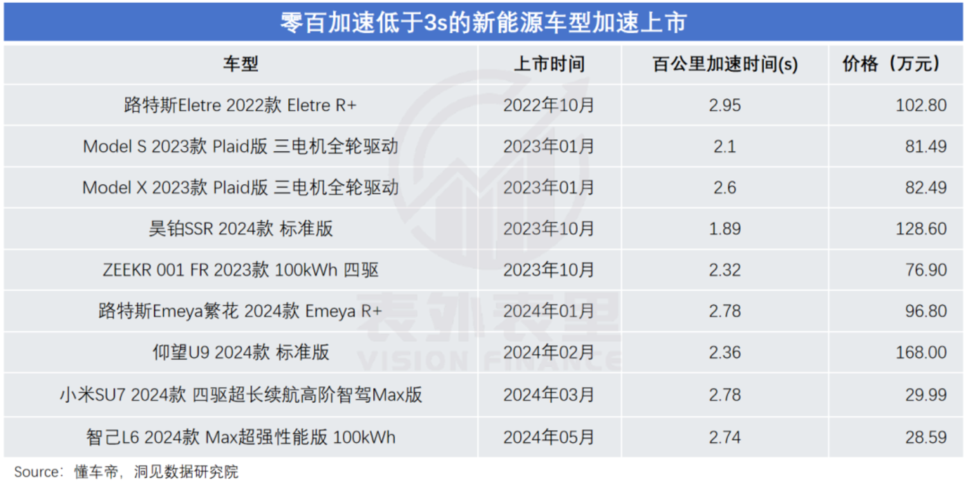 一开始,零百加速 3 秒以内的行列里,只是多了路特斯 Eletre R+而已;到 2023 年,昊铂 SSR 超跑也挤了进来,但同水平的一个巴掌还能数得过来。