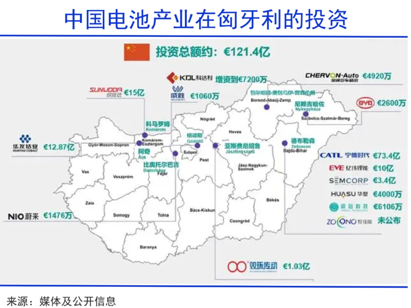 此前,为靠近欧洲主流市场,缩短产业链,并更为符合欧盟的贸易规定,宁德时代、比亚迪、亿纬锂能、蔚来、欣旺达等纷纷进入匈牙利,投资总额高达 121 亿欧元。这个欧洲小国与中国的利益绑定更为紧密,甚至有了些挑战德国 「欧洲汽车一哥」 的底气。