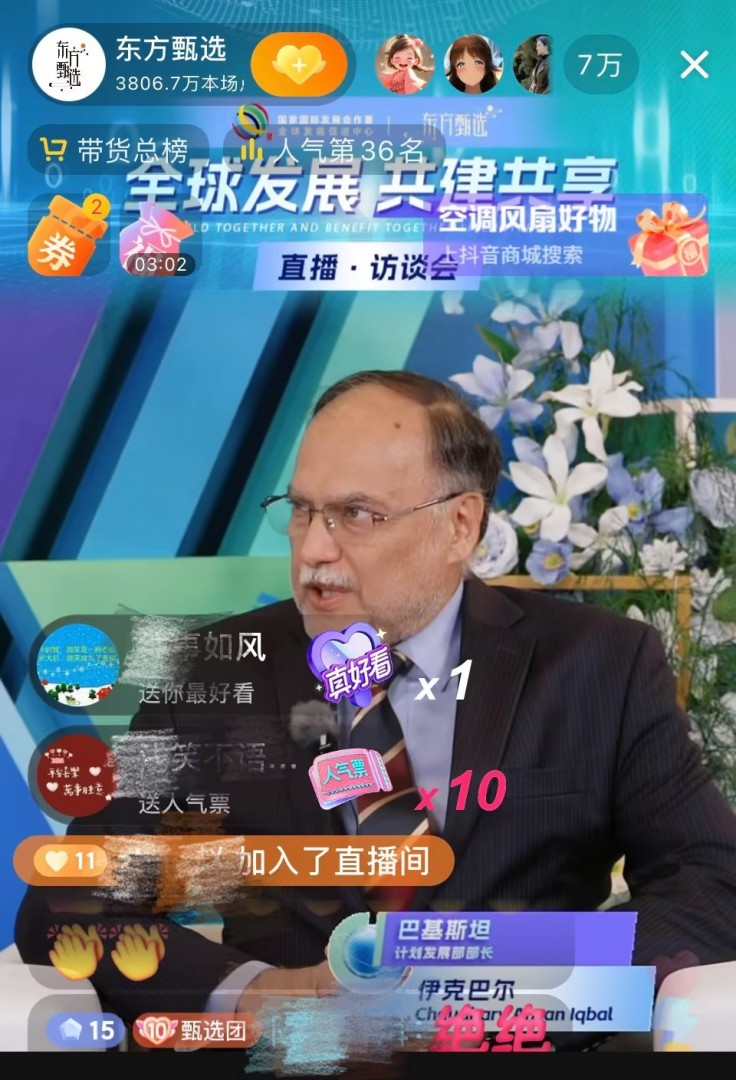 【TechWeb】7 月 12 日消息,由国家国际发展合作署举办的全球共享发展行动论坛近日在北京开幕,其配套活动全球发展数字经济直播访谈会今日走进东方甄选直播间。