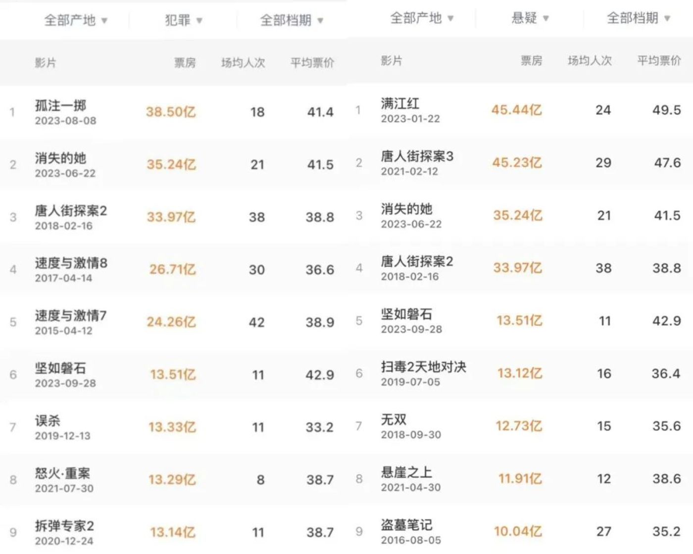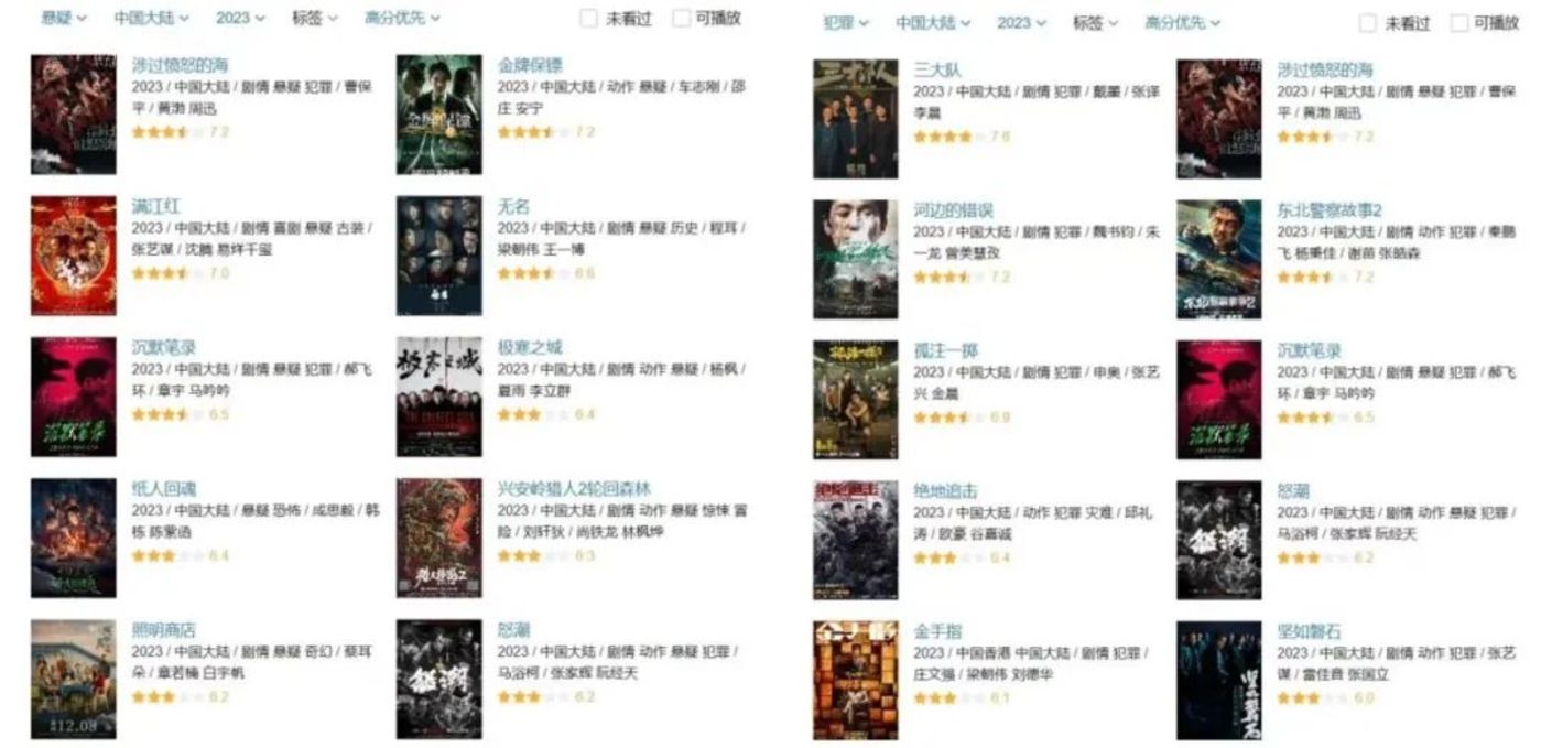 2023 年犯罪、悬疑影片评分排名 (图源:豆瓣)