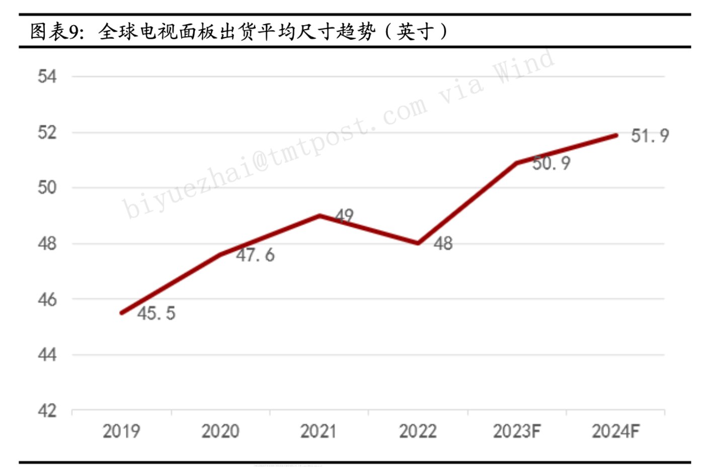 事实上,全球电视面板出货平均尺寸不断增长,且好消息是,当前 LCD 电视显示屏市场已成为京东方、华星光电和惠科股份等中国面板巨头主导的寡头市场。
