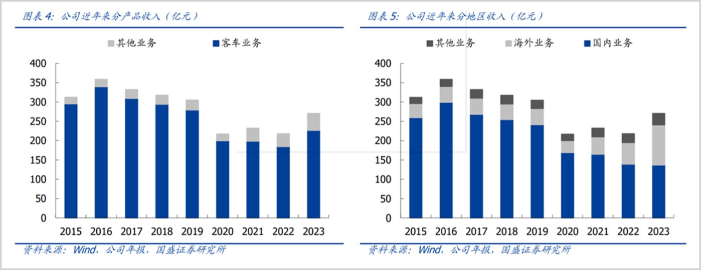 在国内市场复苏的同时,海外市场也在发力。据国盛证券研究,2022 和 2023 年客车出口量分别为 4.8 万辆、7.1 万辆,同比增长了 21%、47%,明显跑赢了国内市场。