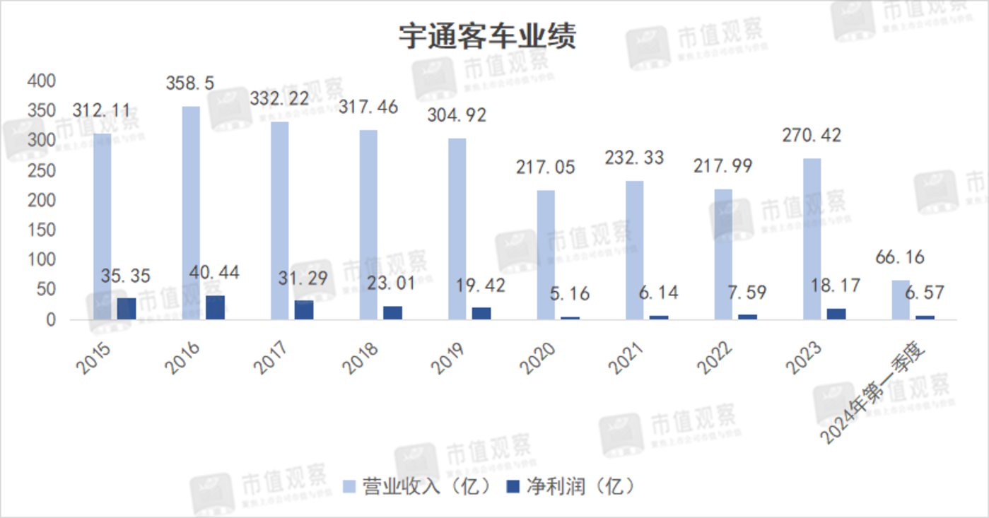 进入 2023 年,宇通客车实现净利润 18.17 亿,同比大增 139.36%,规模接近 2019 年,2024 年一季度继续高歌猛进,实现营收 66.16 亿,同比增长了 85.01%,净利润则同比大增超 440% 至 6.57 亿,增速在六大客车上市企业中排在首位。