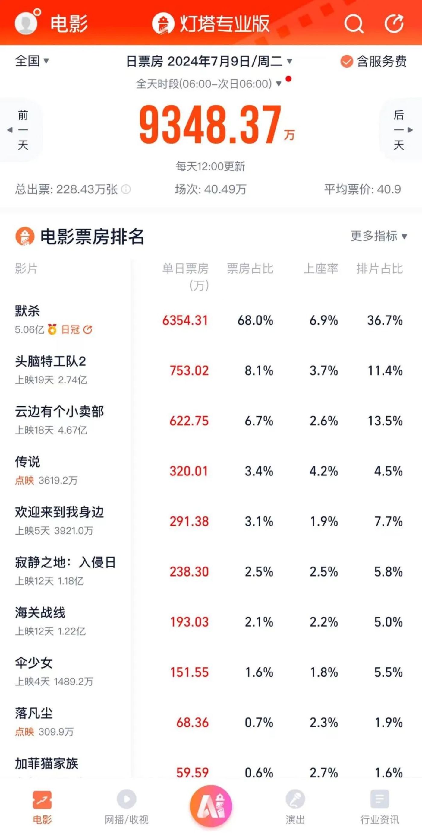 从档期选择上,《传说》 提档的选择有合理之处。首先,7 月以来上映的新片仅有 《默杀》 一部表现尚好,7 月 5 日上映的新片 《欢迎来到我身边》 远低预期,动画电影 《伞少女》 也表现平平,上映已近 20 天的 《头脑特工队 2》 和 《云边有个小卖部》 在 7 月 9 日居然能再次位居单日票房第二、三名,可见市场再次出现了新片匮乏现象。