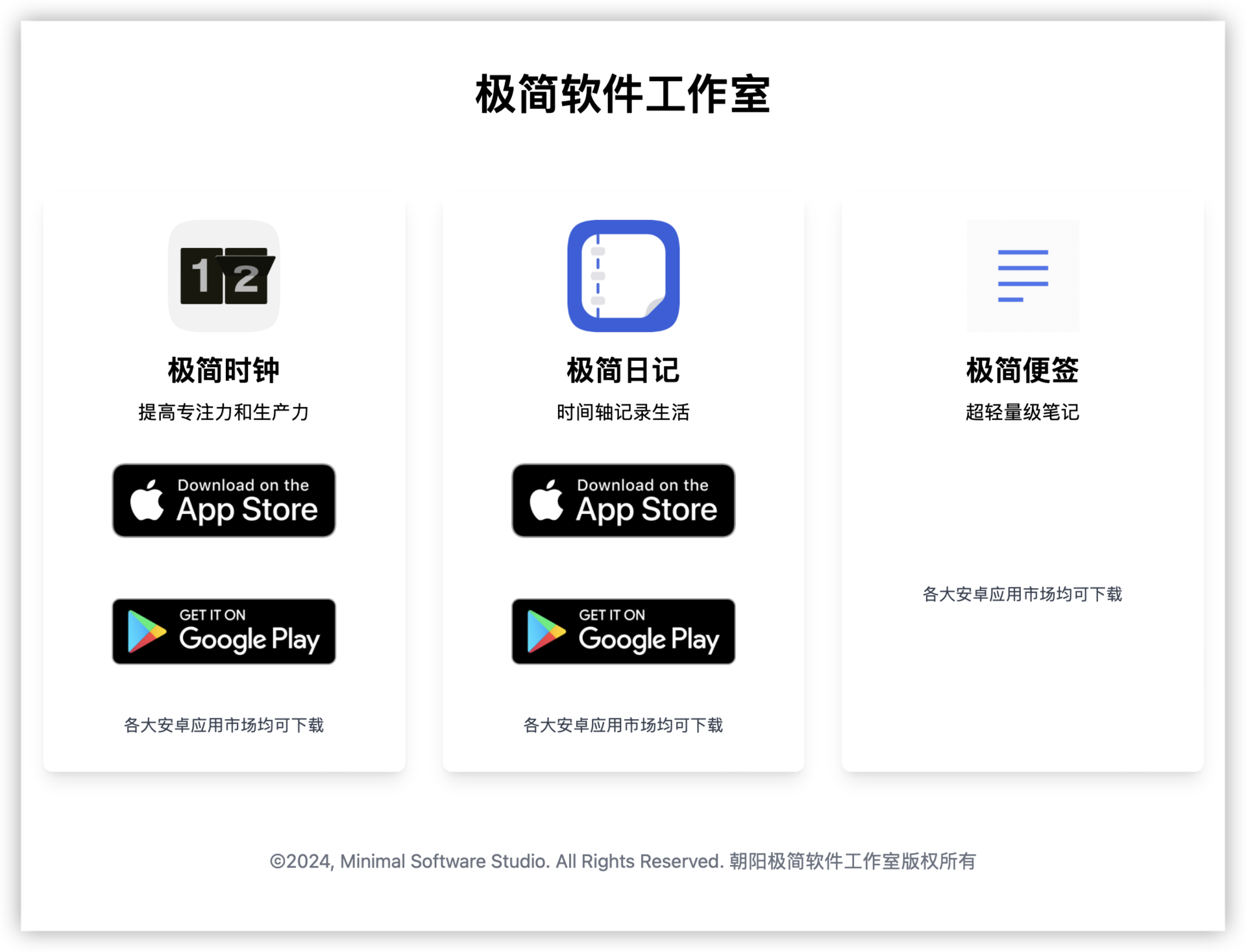 除了极简时钟,极简日记和极简便签也都都修复了小 bug,需要更新版本。