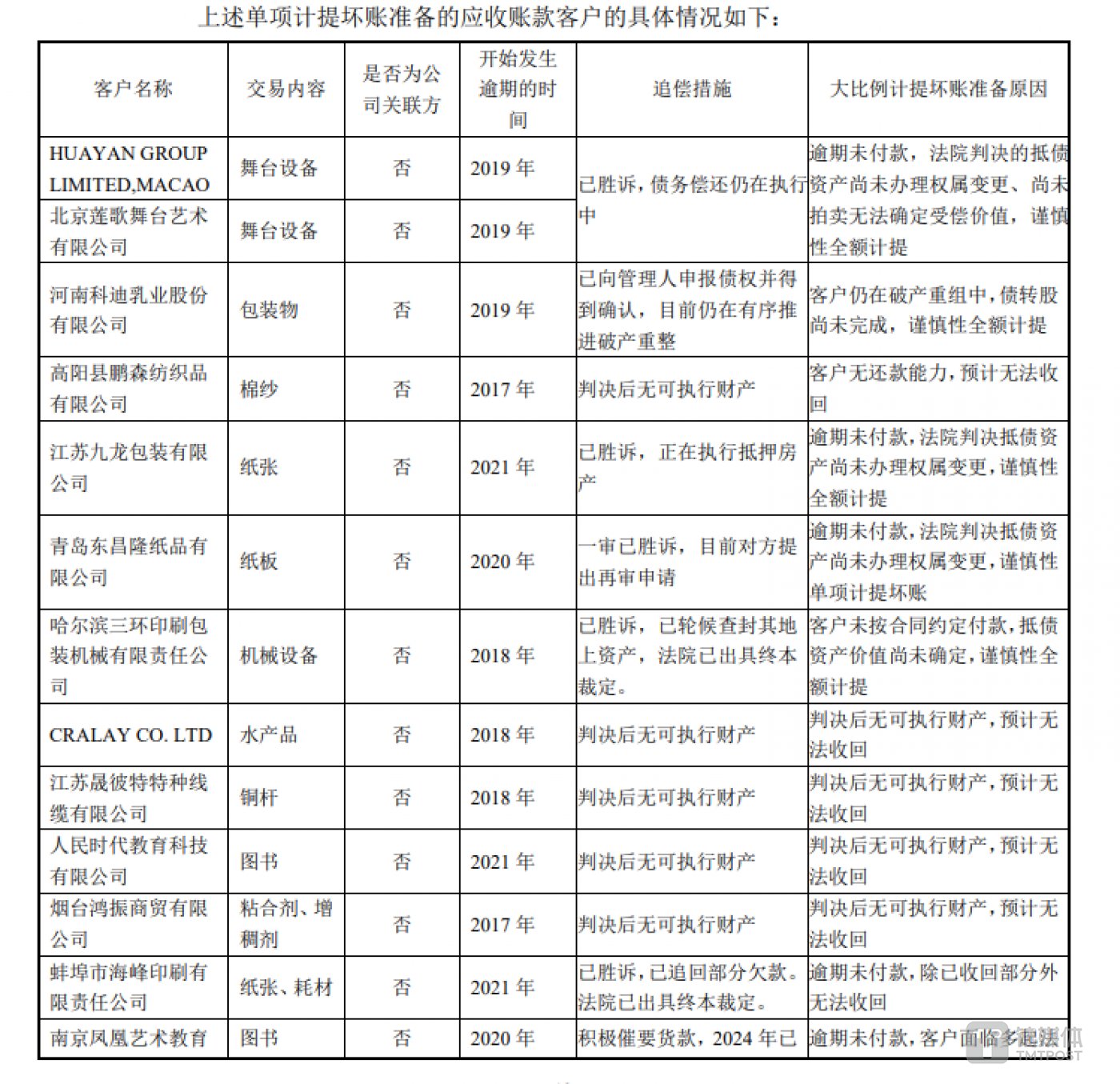 在计提坏账准备的说明里,大部分公司的状态均处在 「判决后也无可执行财产,预计无法收回账款」 的状态。可见,对于部分应收账款而言,即使公司胜了官司,但面对身无分文的老赖,时代出版仍然无计可施。