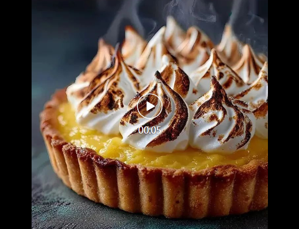 摄像机轻微推进,柠檬挞的热气微微升腾,柠檬挞表面光泽明亮。