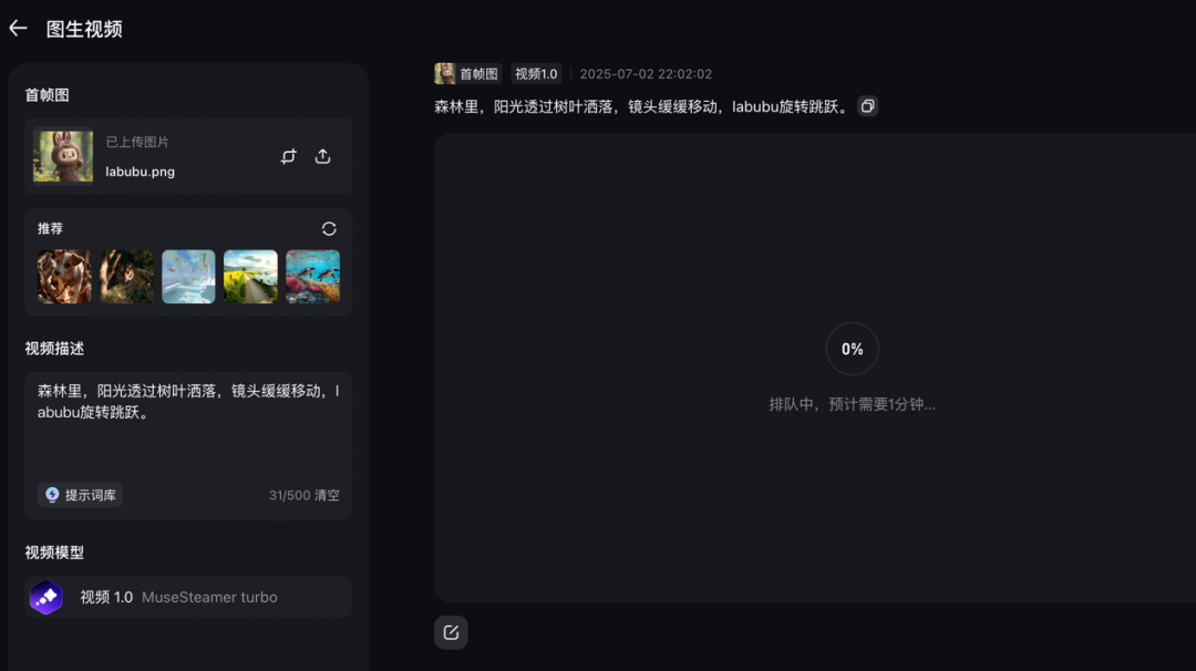 值得注意的是,MuseSteamer 不只是实现图片生成视频,还能融合音效、人声等支持音效一体化的视频生成,并具有可控力强、电影级制作、支持连续 10s 动态视频、性价比极高、生成速度快等特点。