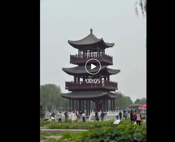 输入视频描述:微风吹拂,荷叶摆动,镜头转过,人群熙熙攘攘。并选择了提示词库中的 「镜头拉近」。