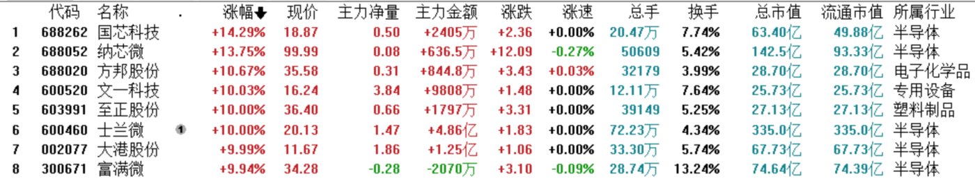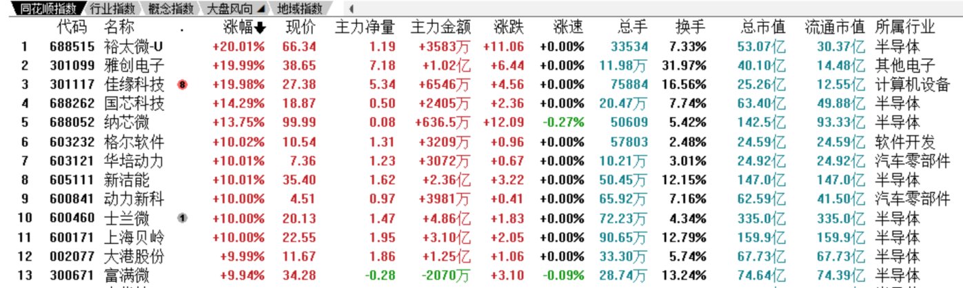 7 月 19 日,汽车芯片板块涨幅超 10% 的个股 13 家。