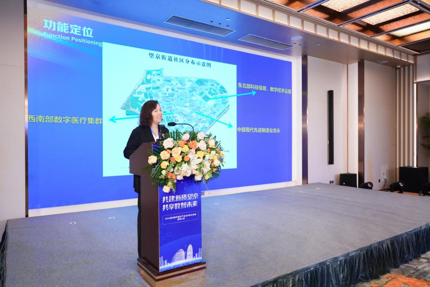 望京街道工委副书记、办事处主任刘丹介绍了望京地区在推动数字经济与医药健康产业融合发展方面的优势与举措。按照朝阳区 「商务+科技」 双轮驱动发展理念,望京街道已成功构建起三大经济产业片区布局。其中,西南部作为数字医疗产业发展区域,望京街道通过坚实的产业基础为依托,突出的创新能力以及朝阳区有力的政策支持,打造了具有望京特色的高质量数字医疗产业集群。同时,望京街道积极链接优质企业资源,在望京地区打造了 「北京数智中医药谷」,共同推动了科技成果转化落地,通过辐射周边区域,进一步推动地区数字医疗产业繁荣发展。