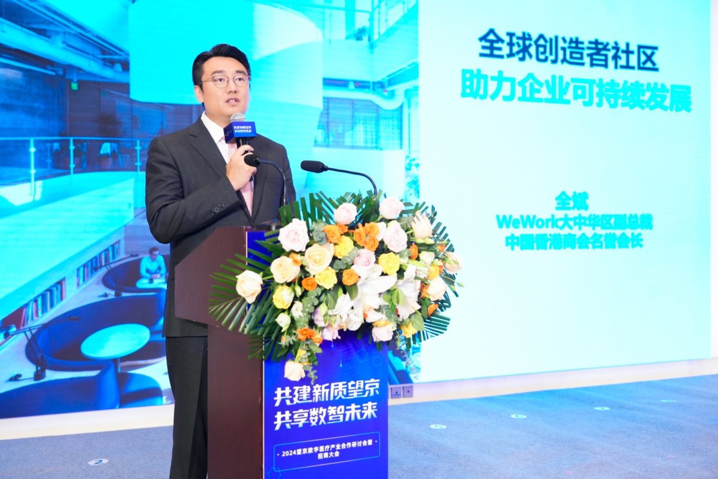 7 月 18 日,由中关村科技园区朝阳园管理委员会、朝阳区发展和改革委员会、朝阳区卫生健康委员会指导,望京街道工委、办事处主办,WeWork 中国承办,北京中医药大学、科企新球协办的 「共建新质望京 共享数智未来」2024 望京数字医疗产业合作研讨会暨招商大会在北京召开。智慧医疗相关企业、投资者、上下游服务商的众多高管及行业专家,共计 100 余家单位、企业、楼宇代表参与,共同探索数字医疗产业的未来发展方向与合作机遇。