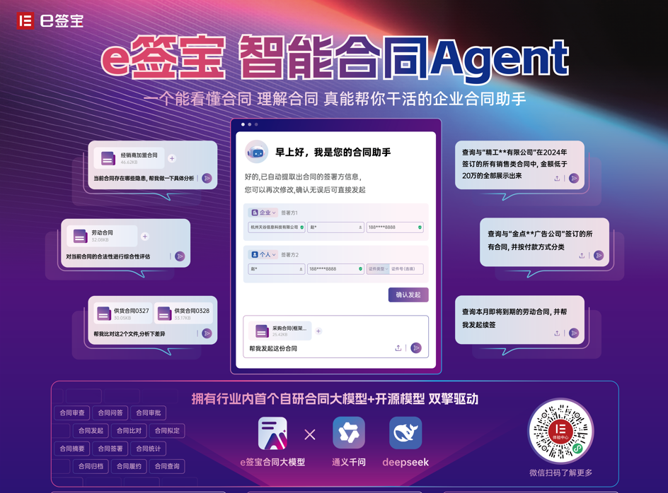 正如 e 签宝创始人兼 CEO 金宏洲所说,「未来三年将是 Agent 技术爆发期,AI 正从单点工具向生态协作模式跃迁, 我们的技术突破不仅停留在实验室阶段, 而是深度嵌入企业合同全生命周期管理, 真正实现 『懂合同、懂法律、更懂企业』 的垂直领域价值闭环。」