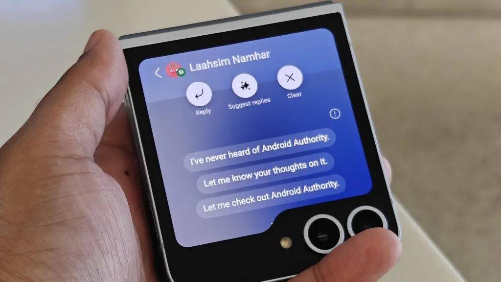 这些看起来是脑洞大开的想法,也许真的离我们并不遥远。三星最新的 Galaxy Z Flip6,已经开始往外屏增加 AI 味:智能回复短信、智能对焦拍照。